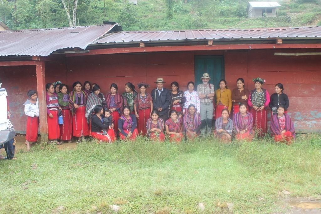 A la entrada de Pal, hombres, mujeres y niñas ixiles, con sus rojos cortes y sus preciosos huipiles nos recibieron con alegría. Dejamos parqueados los carros y por una corta senda entre árboles y café, llegamos al nuevo Centro de Salud. Aquí estaba toda la población y todo fueron saludos , abrazos y alegría a raudales reflejada en sus rostros.